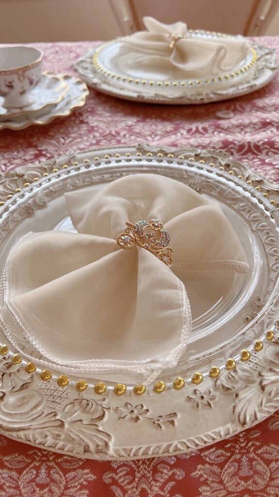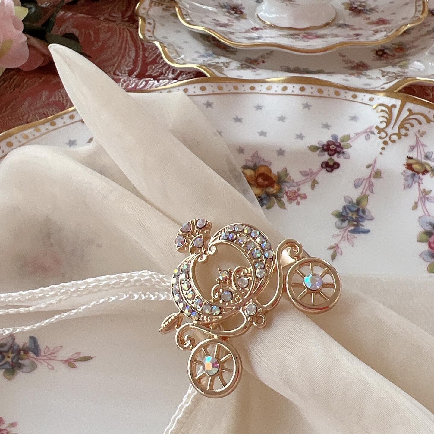 シンデレラのかぼちゃの馬車をイメージした、かわいらしいナプキンリング。普段の食卓が、まるでおとぎ話の世界に飛び込んだような雰囲気になります。