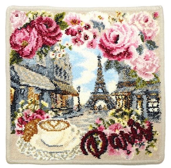 フランス限定のエッフェル塔や薔薇、カップが描かれた可愛らしいハンカチです。